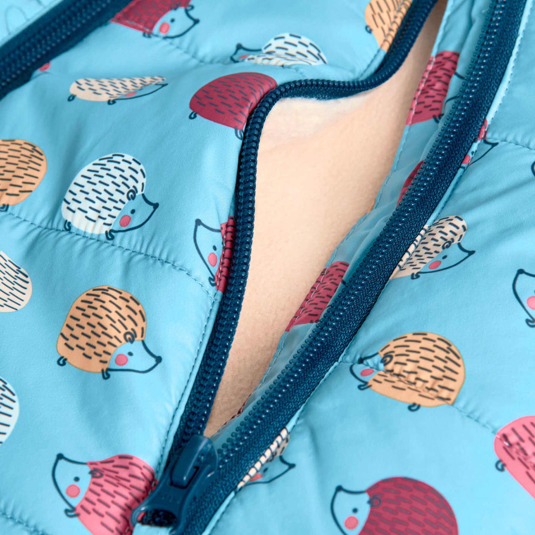 Technical knit snowsuit for babies in a light blue colour with animal prints represents the perfect choice to keep your little one warm during the cold months. Crafted from quilted technical material, it ensures warmth and comfort on winter days.