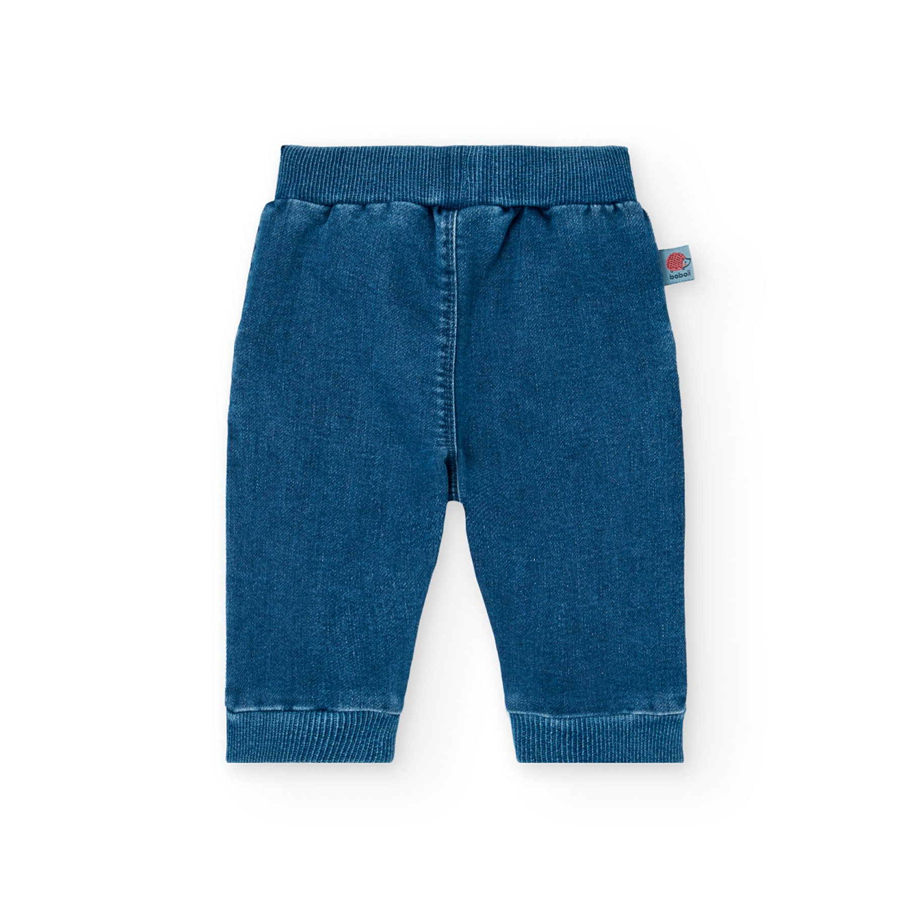 These blue faux denim jeans are a perfect trouser to pair with any top or footwear. The elasticated waistband and adjustable drawstring ensure a secure and comfortable fit, while the elasticated cuffs add extra warmth. Ideal for daily activities, ensuring your baby is always comfortable and stylish.